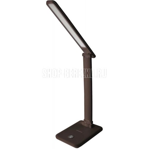 Настольный светильник Ultraflash UF-730 C10 коричневый, источник света - встроенные светодиоды, питание ~230В, 50Гц, мощность 11Вт, три уровня яркости, три цветовые температуры (3000К, 4500К, 6500К). Световой поток - 500лм, материал - пластик. Гарантия 12 месяцев