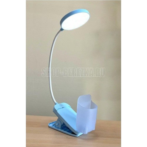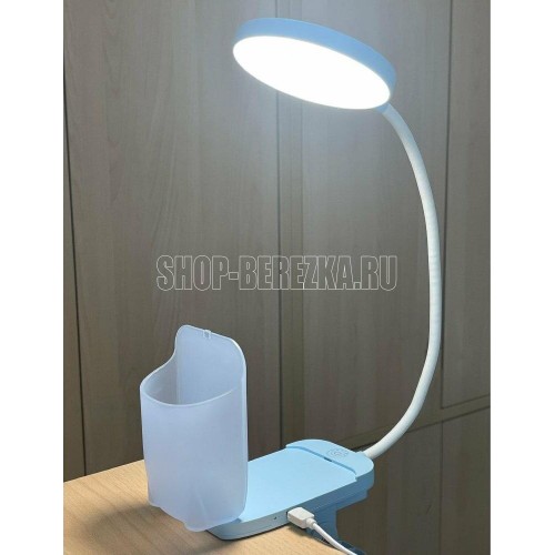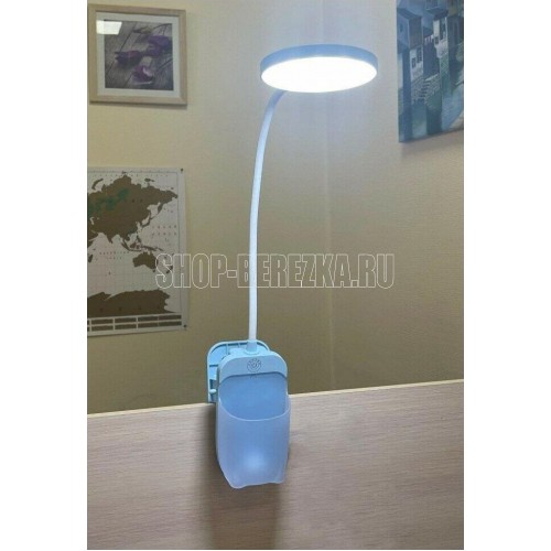 Настольный светодиодный светильник ULTRAFLASH UF-751 C13 цвет голубой. Мощность 7Вт. 3 уровня яркости. Смена цветности свечения от 2800 до 6000К, сенсорное управление. Пенал+прищепка+встроенный аккумулятор.