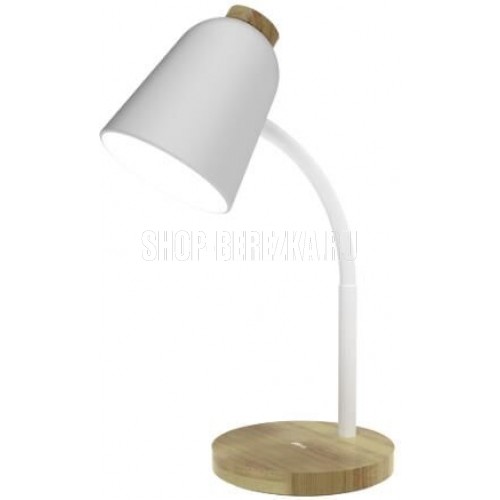 Настольный светильник, цоколь Е27 (до 40 Ватт), на круглой подставке, абажюр металл d.12см, подставка d.15см дерево, высота 50 см. Питание (AC) 220В, встроенный кабель питания 1,5м, с выключателем, длина гибкой ноги 50см. Светодиодная лампочка 7 Ватт в комплекте. Основной материал: металл; с элементами ДСП и резины.