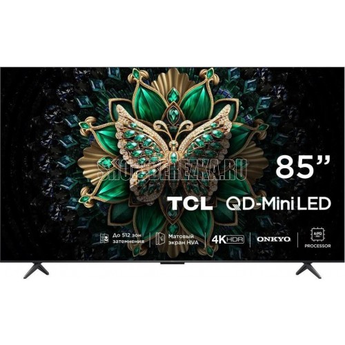 Модель TCL 85C6K Питание 100-240В ~ 50/60Гц Цвет рамки черный Цвет подставки черный Дата начала производства 2025 Экран Тип подсветки экрана Mini LED Технология затемнения есть Расширенная технология экрана QLED Диагональ экрана (дюйм) 85" Диагональ экрана 215 см Разрешение экрана 4K UltraHD, 3840x2160 Стандарты HDTV Ultra HD (4K) 2160p Поддержка HDR есть Технология HDR Dolby Vision IQ, HDR10+ Параметры матрицы Частота обновления экрана 144 Гц Тип матрицы HVA Яркость 550-1000 Кд/м? Контрастность 5500 Угол обзора 178° / 178° Smart TV Операционная система Google TV Поддержка Smart TV есть Распознавание голоса есть Голосовой помощник Google Assistant Wi-Fi встроенный Стандарт Wi-Fi 5 (802.11ac) Прием сигнала Цифровые тюнеры DVB-C, DVB-S, DVB-S2, DVB-T, DVB-T2 Звук Мощность звука 40 Вт Технология звука DTS:X, DTS Virtual:X, Dolby Atmos Сабвуфер есть Объемное звучание есть Мультимедиа Основные видеофайлы и кодеки AV1, H.264, H.265, MPEG-1, MPEG-2