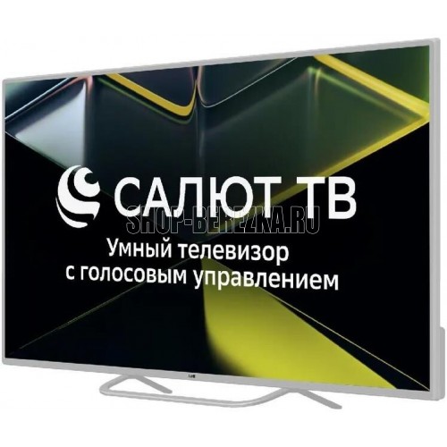 50" (126см) SALUT SMART TV, DLED, UHD 4K (3840*2160), DVB-T2/C, Dolby AC-3; 16:9, яркость 280 кд/м2, контрасность 1200:1, 1.07 млрд. цветов, аудио 2х7 Вт; 3xHDMI, 2хUSB, VGA, AV IN, MINI Y/Pb/Pr, ANT, COAXIAL, CI+ slot, выход под наушники, LAN(RJ-45); Wi-Fi; Bluetooth; USB-медиаплеер(PVR), телетекст, родительский контроль, Timeshift; VESA 200х200; цвет: белый