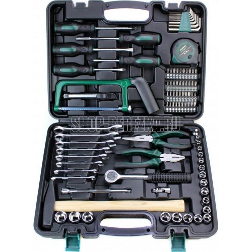 Набор инструмента FAV 90 SETS, 90 предметов: 2 отвертки (+5*75, -5*75), 2 отвертки (+5.8*100, -5.8*100), отвертка-битодержатель, ножовка по металлу, строительный нож, плоскогубцы (150 мм), тонкогубцы (150 мм), 8 шестигранных ключей: (1.5/2/2.5/3/4/5/5.5/6