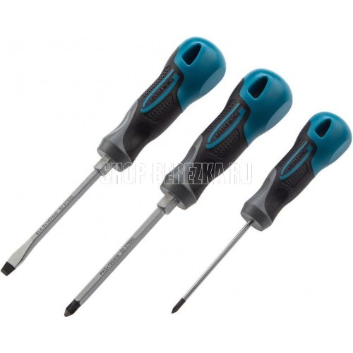 Комбинированный набор Gross 12167 включает 3 отвертки из стали S2, с трехкомпонентными рукоятками, позволяющих осуществлять монтаж/демонтаж крепежных элементов типа Philips и Slotted. Он используется для решения профессиональных задач при проведении строительных, ремонтных и монтажных работ. Длина стержней отверток составляет 75-100 мм, поэтому набор оптимален для работы с легкодоступными резьбовыми соединениями.ПреимуществаИзносостойкость и долговечность — отвертки изготовлены из высококачественной инструментальной стали S2.Высокий ресурс — стержни отверток прошли индукционную закалку, их твердость составляет 56-58 HRC.Удобство использования — шлицы со специальными насечками и фосфатным покрытием надежно сцепляются с головкой крепежа, что снижает риск его повреждения.Защита от ржавчины — хромовое покрытие стержней предотвращает образование коррозии.Намагниченные наконечники — крепеж удобно направлять в отверстие одной рукой, т.к. он не спадает со шлица.Расширенный функционал — шестигранные выступы на рукоятках позволяют использовать гаечный ключ для на 10 мм увеличения крутящего момента.Эргономичность — трехкомпонентные цельнолитые рукоятки надежно лежат в руке, что позволяет прикладывать меньше усилий во время работы.Крупная и четкая маркировка — на затыльнике каждой рукоятки указан типоразмер шлица, что упрощает поиск нужной отвертки под конкретную задачу.