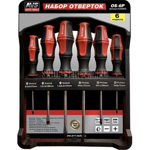Набор отвёрток. Предназначен для ремонтно-монтажных работ путём завинчивания/отвинчивания крепёжных изделий с резьбой. Имеет отвёртки стандартных профилей рабочей части: крестовой (крестообразный) и шлицевый (плоский). Инструмент выполнен в соответствии с требованиями стандарта DIN 5262. Изделия комплектуются высококачественными стержнями из хромованадиевой стали. Намагниченные рабочие части отверток в состоянии удерживать крепеж, что очень часто помогает при работе в труднодоступных местах. Эргономичные двухкомпонентные рукоятки удобно лежат в руке. Намагниченная рабочая часть Материал стержня: хромованадиевая сталь (CrV6150) Покрытие: матовое Прочность: 51-54HRC Форма ручки: прямая Рукоятка: двухкомпонентная (резина и пластик), маслобензостойкая, эргономичная. Комплектация: SL3x75 мм SL5x100 мм SL6x125 мм PH0x75 мм PH1x100 мм PH2x125 мм