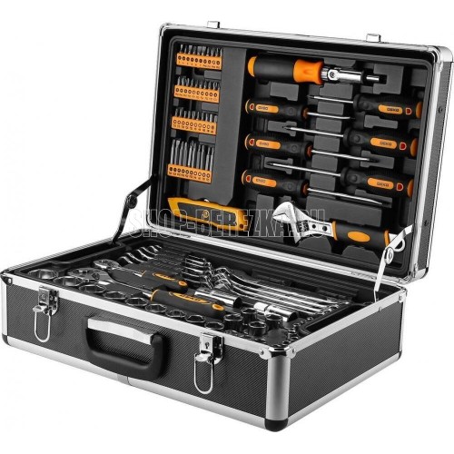 Профессиональный набор инструмента для дома и авто в чемодане DEKO DKMT95 Premium (95 предметов) включает в себя: 30 шт. биты 25L 10 шт. биты 50L 1 шт. строительный нож 19мм 1 шт. держатель для бит 6.35мм 6 шт. отвертки PH1x75, 2x100, 2x125, SL 5x75, 6x100мм 1 шт. разводной ключ 8" 2 шт. трещотки 1/4", 1/2" 11 шт. 1/4" головки 4,5,5.5,6,7,8,9,10,11,12,13мм 13 шт. 1/2" головки 14,15, 16,17,18,19,20,21, 22,24,27,30,32мм 2 шт. свечи 1/2"x 16,21мм 11 шт. комбинированные ключи 6,8,10, 11,12,13,14,15, 17,19,21мм 1 шт. уровень 9" 1 шт. бокорезы 6" 1 шт. длинногубцы 6" 1 шт. плоскогубцы 6" 1 шт. клещи зажимные 7" 1 шт. молоток с гвоздодером 226гр 1 шт. измерительная рулетка 3м