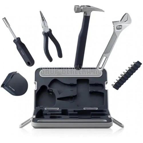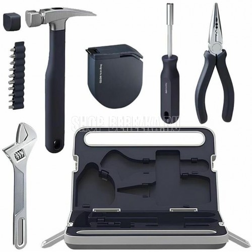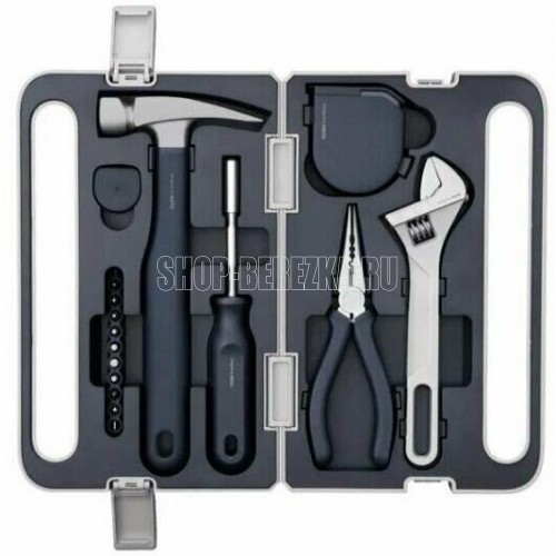 Набор инструментов из 16 предметов Размеры кейса: 70 × 168 × 268 мм Вес (с кейсом): 1710 г В комплекте: универсальная отвертка, молоток, прорезиненный колпак для молотка, измерительная лента, универсальные плоскогубцы, гаечный ключ, набор бит (10 шт). Набор бытовых инструментов подходит для любого вида работ по дому, на даче и в гараже: можно использовать для ремонта мебели, электроприборов, велосипедов и многого другого. Набор включает в себя: Универсальную отвертку с магнитным держателем для бит, с которой удобно и легко работать. 10 вариантов бит из легированной стали S2. Молоток с эргономичной прорезиненной рукоятью. Резиновый колпачок для защиты рабочих поверхностей. Измерительную ленту длиной в 3 м с системой автоблокировки. Универсальные плоскогубцы с игольчатым наконечником. Регулируемый гаечный ключ с шириной захвата в 25 мм. Пластиковый кейс с ручкой – удобно хранить и брать с собой.