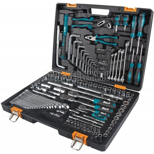 Brand: BORT Предметов в наборе, шт: 142 Материал: Сталь CrV Вес нетто, кг: 14,5 Вес брутто, кг: 15,22 Габариты упаковки, см: 56 x 41 x 9,5 Гарантия, г: 2 Расширенная гарантия, г: 5 Мастер-бокс, шт: 1 EAN13: 4260623418705 Модель: BTK-142U