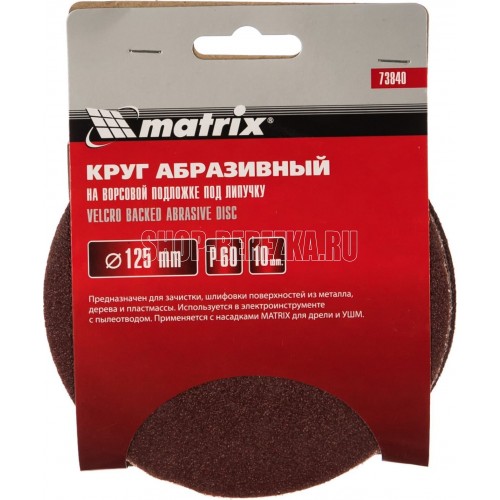 MATRIX Круг абразивный на ворсовой подложке под "липучку", P 60, 125 мм, 10 шт. 73840