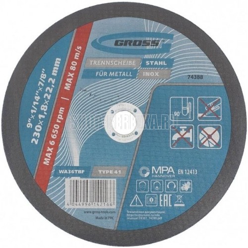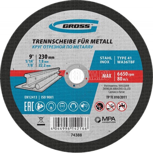 GROSS Круг отрезной по металлу, 230 х 1.8 х 22 мм