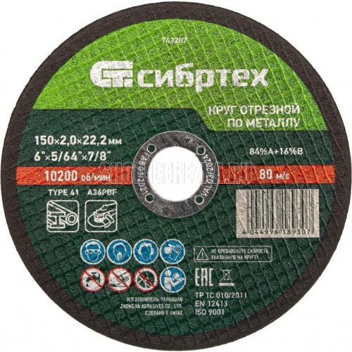 СИБРТЕХ Круг отрезной по металлу, 150 х 2,0 х 22,2 мм