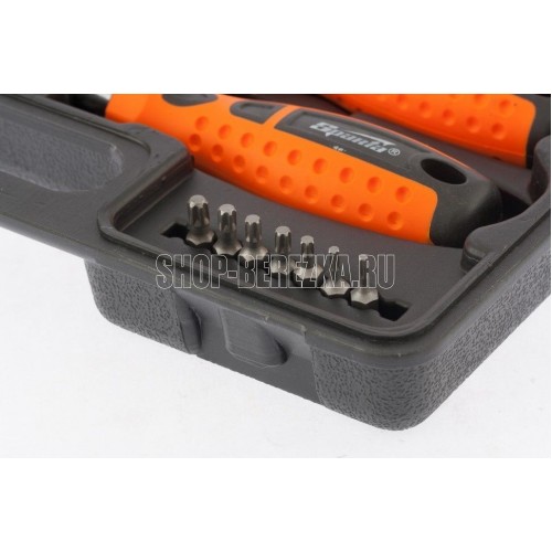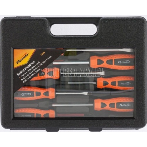 Набор отверток, CrV, SPARTA 13309 применяется для монтажа резьбовых соединений. В комплекте 21 предмет (отвертки с профилем SL 3 х 75, 5 х 75, 6 х 100, 7 х 150 мм, PH1 x 75, 2 x 100 мм). Стержни выполнены из стали. Твердость материала 46 HRc. Рукоятки эргономичной формы, с противоскользящим покрытием. Имеются отверстия для подвеса.