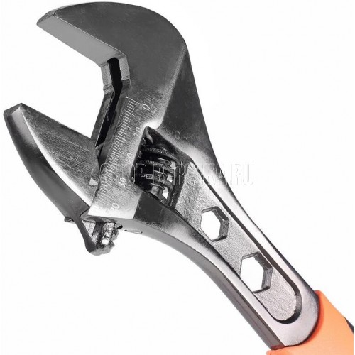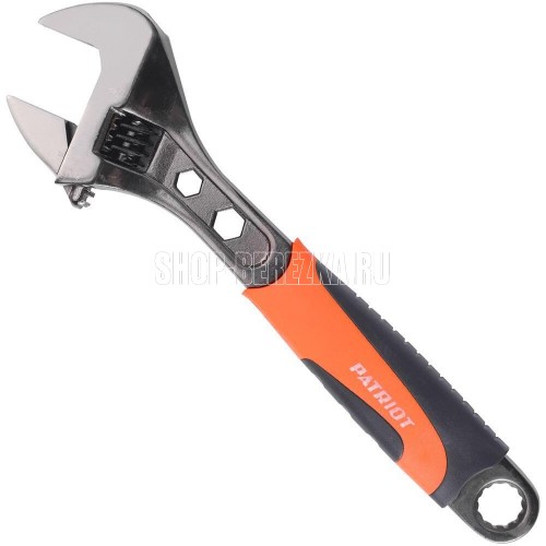 Ключ разводной PATRIOT AWF-300 для работы с крепежами. Инструмент выполнен из углеродистой стали с антикоррозийным покрытием, обеспечивающим износостойкость и долговечность эксплуатации. Прорезиненная ручка защищает пользователя от выскальзывания при работе.