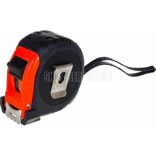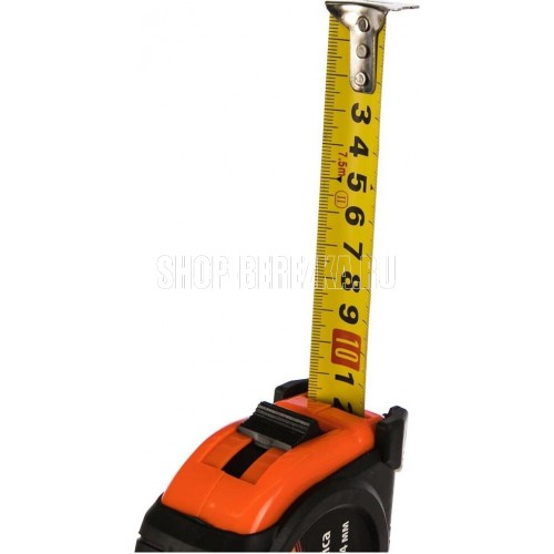 Пластиковый корпус обрезинен для защиты инструмента при падениях. Плавающий зацеп измерительного полотна обеспечивает точные измерения поверхностей. Специальное окошко в зацепе измерительного полотна позволяет использовать рулетку в качестве циркуля. Возвратная пружина усиленного типа.