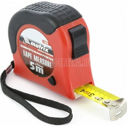 MATRIX Рулетка Double fixation, 5 м х 19 мм, обрезиненный корпус, двойная плавная фиксация 31056