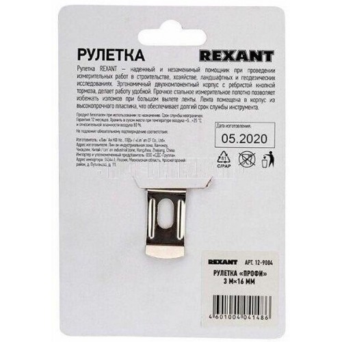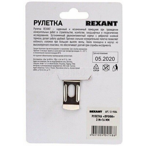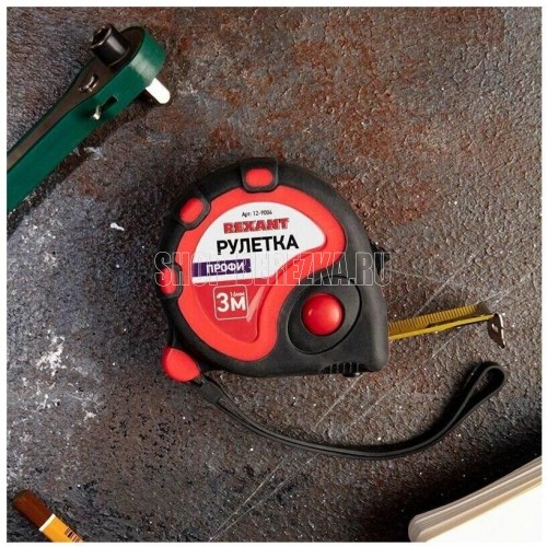 Измерительная рулетка REXANT «Профи» необходима при проведении измерительных работ в строительстве, хозяйстве, ландшафтных и геодезических исследованиях. Эргономичный прорезиненный корпус выполнен из ударопрочного пластика, не скользит в руках. Для удобства использования рулетки предусмотрены кнопки стопора и фиксации тормоза. Полотно обладает удобным зацепом с отверстием посередине. На корпусе расположена клипса-зажим для фиксации рулетки на ремне, кармане или поясной сумке. Ремешок позволяет надевать инструмент на запястье, чтобы освободить руки для работы. Характеристики: Длина: 3 м Ширина полотна: 16 мм Материал полотна: закаленная сталь Материал корпуса: ABS-пластик, резина Преимущества: Отверстие на зацепе позволяет зафиксировать полотно рулетки на шляпке гвоздя или самореза Большой вылет прочного полотна без излома Ударопрочный двухкомпонентный корпус Глянцевое покрытие полотна