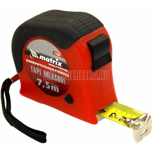 MATRIX Рулетка Double fixation,7,5 м х 25 мм,обрезиненный корпус,двойная плавная фиксация 31058