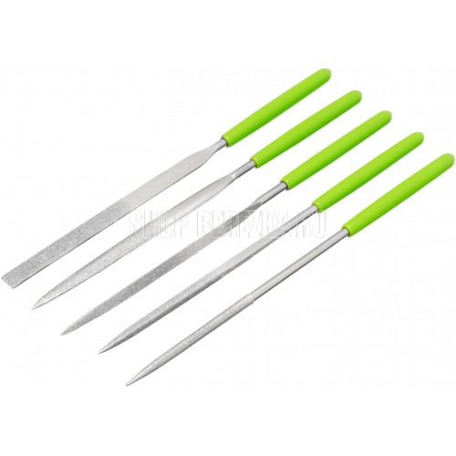 Набор алмазных надфилей Сибртех 158307 из 5 шт. размером 140 х 50 х 3 мм предназначен для опиливания твердых поверхностей — стекла, металла, камня, керамики. В комплект поставки входят надфили с самыми распространенными профилями, благодаря чему можно обрабатывать плоские детали, пазы, углы, отверстия и рельефные поверхности. Набор будет полезен для проведения слесарных или ремонтно-отделочных работ, также пригодится в быту. Преимущества Высокий ресурс — абразив из алмазной крошки характеризуется высокой твердостью. Комфортная работа — обрезиненные рукоятки не выскальзывают из ладони. Быстрый поиск среди других инструментов — яркие рукоятки хорошо заметны в рабочем пространстве.