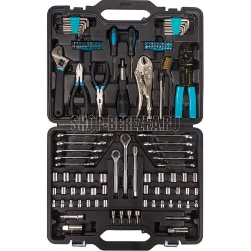 В КОМПЛЕКТЕ Ключ шестигранный (16 шт) Держатель для бит 170 мм с трещеткой (1 шт) Бита 25 мм (40 шт) Ключ разводной (1 шт) Тонкогубцы (1 шт) Бокорезы (1 шт) Манометр (1 шт) Металлическая щетка (1 шт) Пинцы 7" (1 шт) Отвертка (2 шт) Приспособление для зачистки проводов (1 шт) Ключ гаечный (10 шт) Рукоятка с трещеткой квадрат 1/4 (1 шт) Рукоятка с трещеткой квадрат 3/8 (1 шт) Торцевая головка квадрат (40 шт) Удлинитель квадрат 1/4 3 (1 шт) Удлинитель квадрат 3/8 3 (1 шт) Удлинитель квадрат 3/8 6 (1 шт) Свечной ключ квадрат 3/8 16мм (1 шт) Свечной ключ квадрат 3/8 21 мм (1 шт).