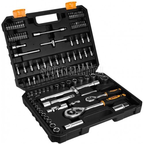 Набор инструментов для авто в кейсе DEKO DKMT112 предназначен для обслуживания автомобилей, а также подойдет для проведения ремонта бытовых конструкций, садовой техники дома и на даче. Все инструменты набора выполнены из стали, что обеспечивает их долгий срок службы. В комплект набора входит: Торцевые головки 1/4": 4, 4.5, 5, 5.5, 6, 7, 8, 9, 10 ,11, 12, 13, 14 мм; Е4, Е5, Е6, Е7, Е8 - 18 шт Торцевые головки 1/2": 14, 15, 16, 17, 18, 19, 21, 24 мм - 8 шт Отвертка-держатель - 1 шт Шестигранные ключи: 1.5, 2, 2.5 мм - 3 шт Удлинители: 1/4"х2", 1/4"х4", 1/2"х5" - 3 шт Т-образный вороток 1/4" - 1 шт Гибкий удлинитель 1/4" - 1 шт Удлинитель с адаптером для головок 1/2" - 1 шт Биты 6.35 мм: TT: 10, 20; PZ: 0, 1, 2, 3; PH: 0, 1, 2, 3; SL: 3, 4, 5, 5.5, 6, 6.5, 7, 8; H:2, 2.5, 3, 4, 5, 5.5, 6, 7, 8; T:8, 9, 10, 15, 20, 25, 27, 30, 40; AD - 36 шт Биты 8 мм: T: 40, 45, 50, 55; H:8, 10, 12, 14; SL:8, 10, 12; PH: 3, 4; PZ:3, 4 - 16 шт Карданный шарнир: 1/4", 1/2" - 2 шт Биты-головки: PH:1, 2; PZ: 1, 2; H: 3, 4, 5, 6; SL: 4, 5.5, 7; T:8, 10, 15, 20, 25, 30 - 17 шт Трещотки: 1/4", 1/2" - 2 шт Свечные головки: 1/2"х16, 21 мм - 2 шт Держатели для бит: 1/4", 1/2" - 2 шт Руководство по эксплуатации - 1 шт
