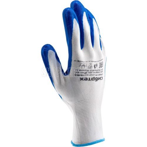 СИБРТЕХ Перчатки полиэфирные с синим нитрильным покрытием, размер L, 15 класс вязки 67862