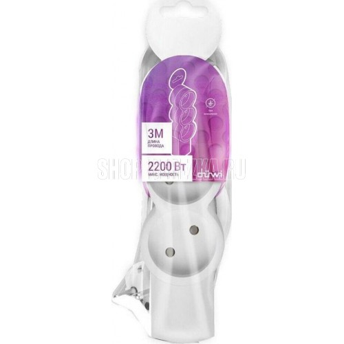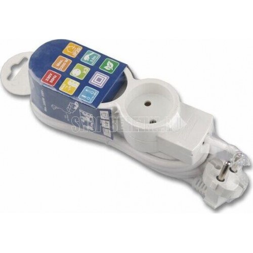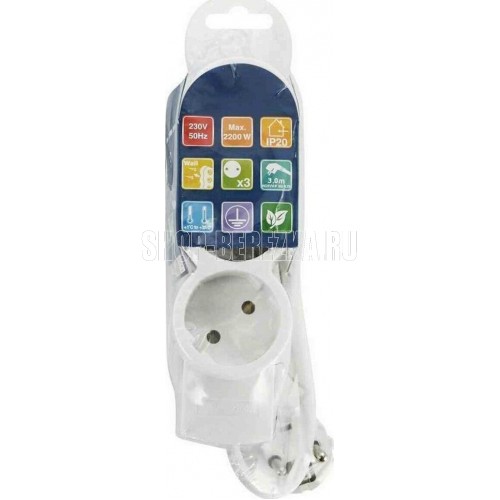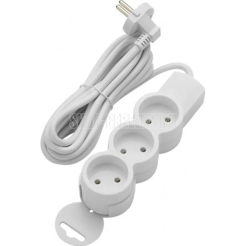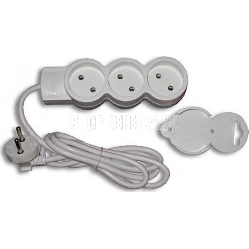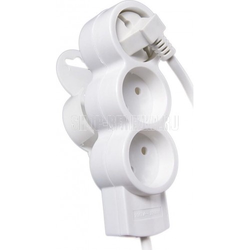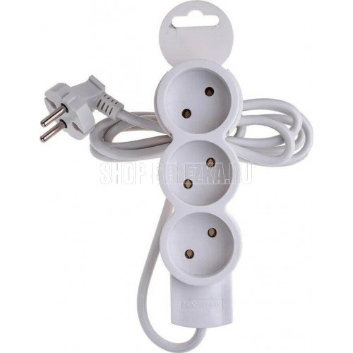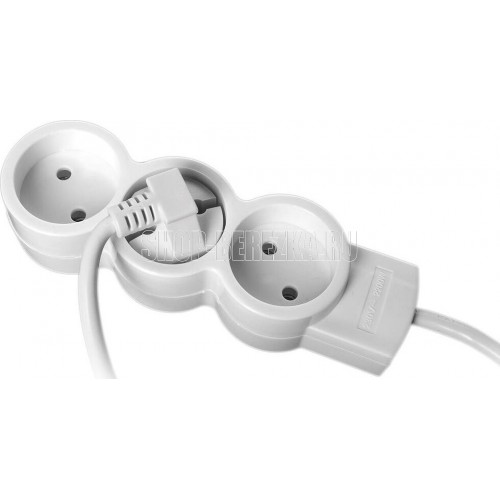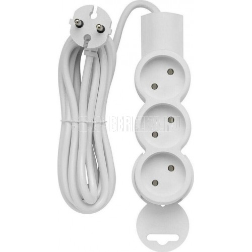 Удлинитель бытовой, без заземления, количество гнезд - 3, подключаемая мощность : 2200 Вт, степень защиты: IP20, тип провода и сечение: 2Gх0,75, цвет: белый, длина: 3,0 м.