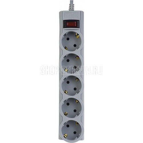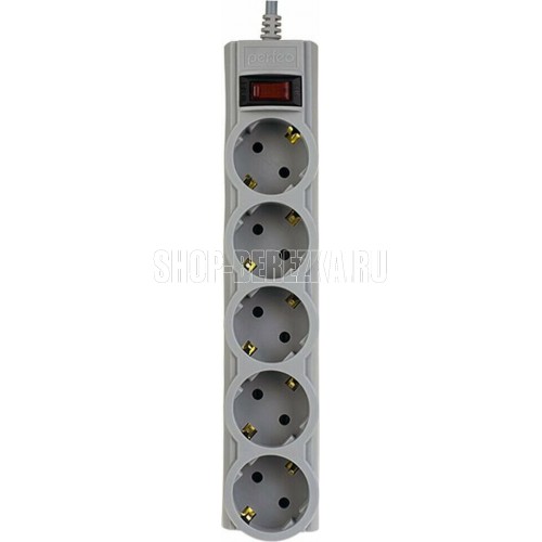 Cетевой фильтр, количество розеток - 5 (евростандарт с заземлением), номинальный ток нагрузки - 10А, номинальное входное напряжение - 220В, корпус из ударопрочного негорючего материала, длина кабеля - 5,0 м.