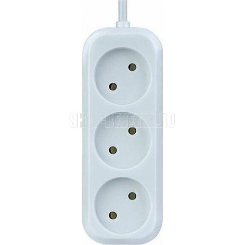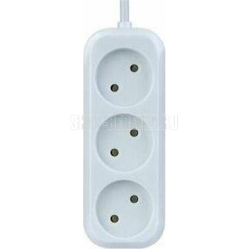 Удлинитель "рулетка", количество выходных розеток - 3 (без заземления), максимальный ток нагрузки - 6 А, суммарная мощность нагрузки1.2 кВт, длина кабеля - 3,0 м.