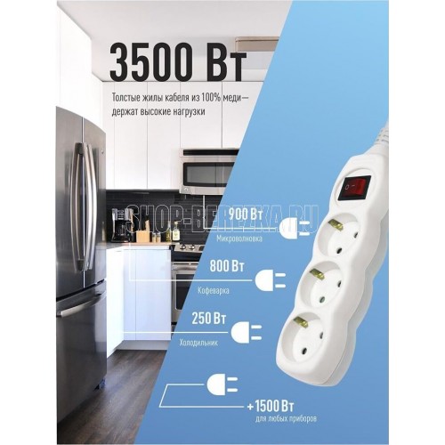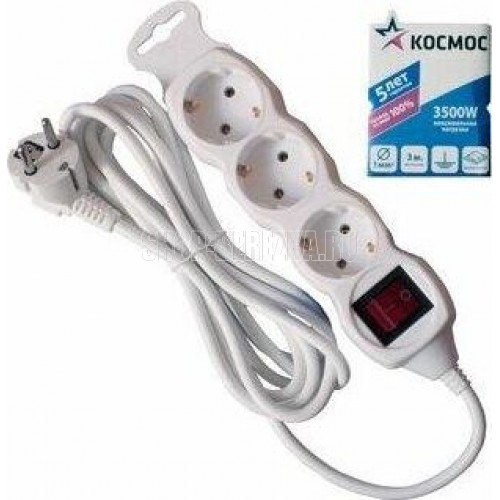 3метра,3розетки,заземление,выключатель,ПВС 2х1м2 до 1300Вт (16А,220В)