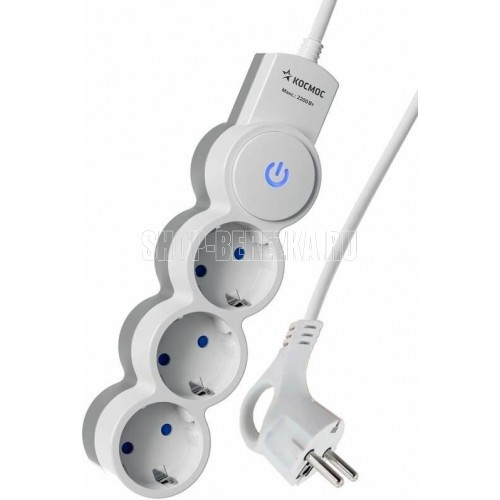 "Бытовой удлинитель белого цвета с кнопкой включения, корпус выполнен из прочного ABS пластика с 3 гнёздами, которые имеют защитные шторки, 10 А, 3м ПВС провод 3х1 мм2, темп. Эксплуатации 1...35 °C, ном. Частота 50 Гц, напряжение 220В, IP20, макс. Мощность 10А 2200 Вт. Китай.