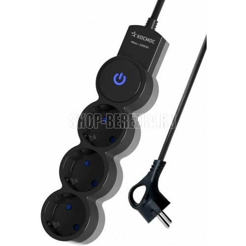 "Бытовой удлинитель черного цвета с кнопкой включения, корпус выполнен из прочного ABS пластика с 3 гнёздами, которые имеют защитные шторки, 10 А, 5м ПВС провод 3х1 мм2, темп. Эксплуатации 1...35 °C, ном. Частота 50 Гц, напряжение 220В, IP20, макс. Мощность 10А 2200 Вт. Китай.