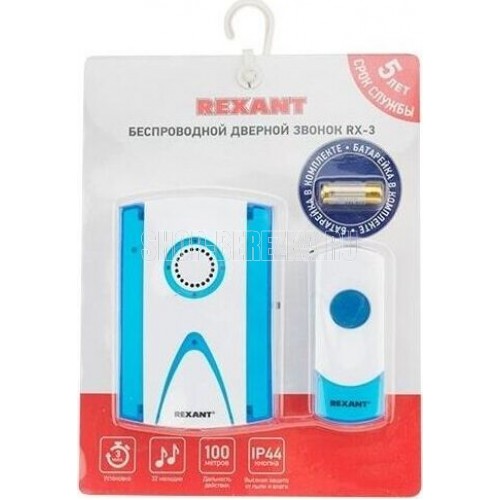 REXANT (73-0030) RX-3 Беспроводной дверной звонок (кнопка - IP44)