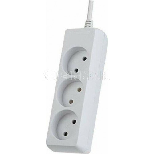 Удлинитель, количество розеток - 3 , максимальный ток нагрузки - 10 А , суммарная мощность нагрузки - 2,2 кВт, корпус из ударопрочного негорючего материала, долговечный кабель, длина кабеля - 3,0 м.