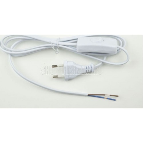 Сетевой шнур с вилкой и выключателем. 2А, 500Вт, 1,7м. Белый. (новинка) ; Длина кабеля, м - 1,7; Заземление - Нет; Максимальная нагрузка, Вт - 500; Минимальная партия - 1; Наличие выключателя - Да; Номинальная сила тока, А - 2; Сечение провода, мм2 - 0,5; Срок гарантии, мес. - 12 месяцев; Срок годности - не ограничен; Цвет корпуса (изделия) - белый