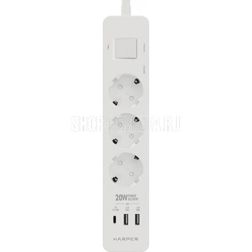 Удлинитель с 2xUSB+1xType-C (Power Delivery 20Вт) портами; Розетки 3шт; Длина кабеля 5.0 метров Максимальная мощность 4000W (16A); 2xUSB, 1xType-C (Максимальная суммарная сила тока: 4.8 А); Выключатель с защитой от перегрузок; Защитные шторки, Индикатор заземления, Индикатор работы; Индикатор защиты от перепада напряжения; Отверстия для крепления на стену; Стильный лаконичный дизайн; Высококачественный пластик; Питание AC 220-250V 50Hz. Вес: 600 гр.; Габариты 270х55х41 мм.
