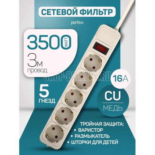 Сетевой фильтр Perfeo "REAL POWER" — надежная защита вашей техники 16А Мощный сетевой фильтр с 5 розетками для одновременного подключения всей вашей электроники и бытовой техники. Безопасность и функциональность в современном дизайне. ?? Тройная защита: • Защита от перегрузки • Защита от короткого замыкания • Защита от импульсных помех Мощные характеристики: • 5 розеток с заземлением • Максимальный ток: 16А • Мощность: 3500 Вт • Напряжение: 220-240 В • Световой индикатор работы Преимущества: • Подходит для энергоемкой техники (кондиционеры, обогреватели, компьютеры) • Прочный негорючий корпус • Компактный эргономичный дизайн • Стильный серый цвет • Долговечные контакты Идеальное применение: • Домашний кинотеатр и аудиосистема • Рабочее место с компьютерной техникой • Кухня с бытовой техникой • Офисные помещения Гарантия качества и безопасности! Сетевой фильтр Perfeo "REAL POWER" — это разумный выбор для тех, кто ценит надежность и защиту своей электроники от любых перепадов напряжения!