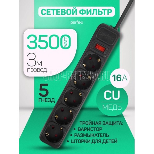 Сетевой фильтр Perfeo "REAL POWER" — надежная защита вашей техники 16А Мощный сетевой фильтр с 5 розетками для одновременного подключения всей вашей электроники и бытовой техники. Безопасность и функциональность в современном дизайне. ?? Тройная защита: • Защита от перегрузки • Защита от короткого замыкания • Защита от импульсных помех Мощные характеристики: • 5 розеток с заземлением • Максимальный ток: 16А • Мощность: 3500 Вт • Напряжение: 220-240 В • Световой индикатор работы Преимущества: • Подходит для энергоемкой техники (кондиционеры, обогреватели, компьютеры) • Прочный негорючий корпус • Компактный эргономичный дизайн • Стильный серый цвет • Долговечные контакты Идеальное применение: • Домашний кинотеатр и аудиосистема • Рабочее место с компьютерной техникой • Кухня с бытовой техникой • Офисные помещения Гарантия качества и безопасности! Сетевой фильтр Perfeo "REAL POWER" — это разумный выбор для тех, кто ценит надежность и защиту своей электроники от любых перепадов напряжения!