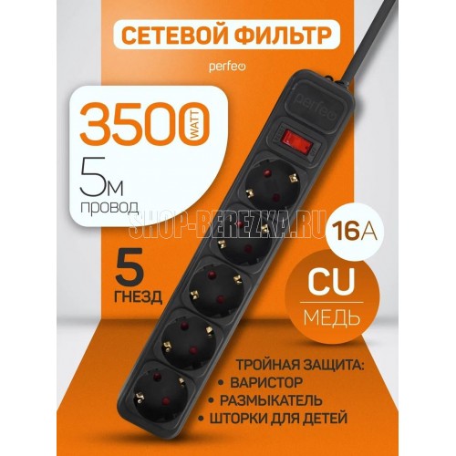 Сетевой фильтр Perfeo "REAL POWER" — надежная защита вашей техники 16А Мощный сетевой фильтр с 5 розетками для одновременного подключения всей вашей электроники и бытовой техники. Безопасность и функциональность в современном дизайне. ?? Тройная защита: • Защита от перегрузки • Защита от короткого замыкания • Защита от импульсных помех Мощные характеристики: • 5 розеток с заземлением • Максимальный ток: 16А • Мощность: 3500 Вт • Напряжение: 220-240 В • Световой индикатор работы Преимущества: • Подходит для энергоемкой техники (кондиционеры, обогреватели, компьютеры) • Прочный негорючий корпус • Компактный эргономичный дизайн • Стильный серый цвет • Долговечные контакты Идеальное применение: • Домашний кинотеатр и аудиосистема • Рабочее место с компьютерной техникой • Кухня с бытовой техникой • Офисные помещения Гарантия качества и безопасности! Сетевой фильтр Perfeo "REAL POWER" — это разумный выбор для тех, кто ценит надежность и защиту своей электроники от любых перепадов напряжения!