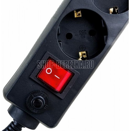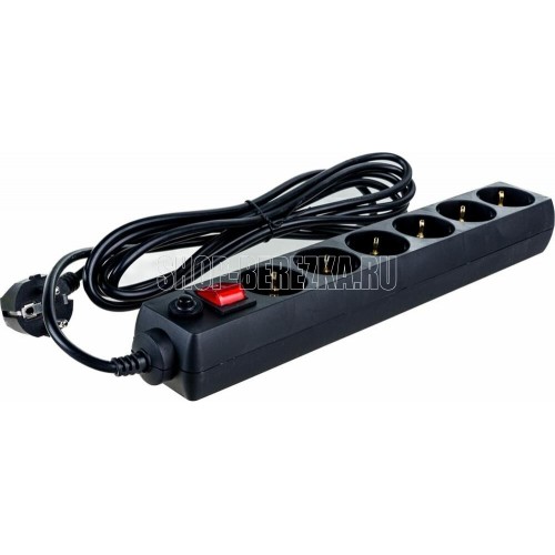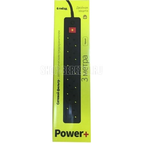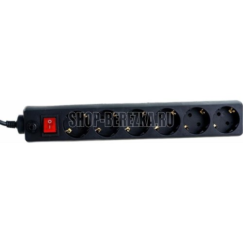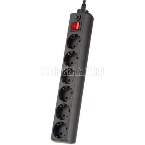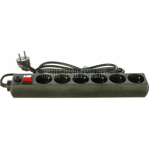 Cетевой фильтр, количество розеток - 6 (евростандарт с заземлением), номинальный ток нагрузки - 10А, номинальное входное напряжение - 220В, корпус из ударопрочного негорючего материала, длина кабеля - 3,0 м.