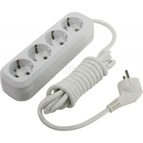 Удлинитель с заземлением, количество розеток - 4 , номинальный ток, А 16 максимальная мощность, Вт - 3500, сечение провода, мм2 - 3x1,0, материал корпуса ABS-пластик, длина шнура - 3 м.