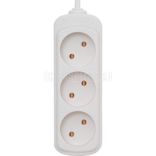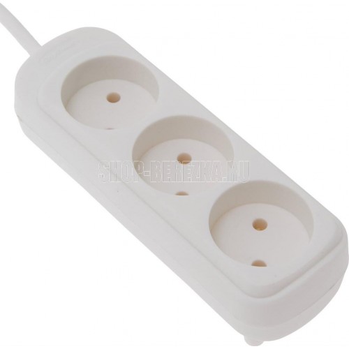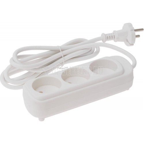 Двухжильный кабель ПВС, сечение 0,75 мм2, номинальное напряжение: 220 В, рабочая частота: 50-60 Гц, сила тока: 10 А, макс. мощность нагрузки: 2200 W (2,2 кВт), 3 гнезда, длина кабеля: 1,8 м, материал: пластик, индивидуальная упаковка: пакет с еврослотом.