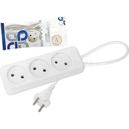 Двухжильный кабель ПВС, сечение 0,75 мм2, номинальное напряжение: 220 В, рабочая частота: 50-60 Гц, сила тока: 10 А, макс. мощность нагрузки: 2200 W (2,2 кВт), 3 гнезда, длина кабеля: 5 м, материал: пластик, индивидуальная упаковка: пакет с еврослотом.