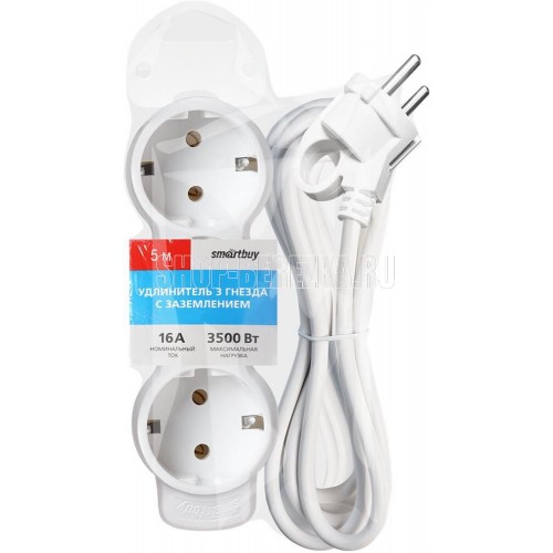 Номинальное напряжение: 250 В; Частота: 50 Гц; Номинальный ток: 16 А; Тип провода: ПВС 3x1,0мм?; Материал корпуса: АБС-пластик; Климатическое исполнение: УХЛ-3; Длина провода: 1,5м Степень защиты от влаги и пыли: IP-20; Цвет: белый.