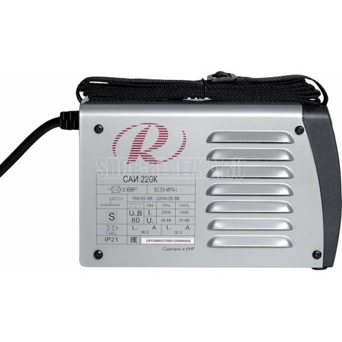 Напряжение питающей сети 140-240, Продолжительность нагружения, (40%) 70% 220A, Потребляемый ток 36.5, Класс защиты IP21, Серия САИ, Тип Инверторный, Тип сварки дуговая (электродом, MMA), Номинальная мощность 6600Вт, Напряжение холостого хода 80В, Диапазон регулирования сварочного тока 10-220А, Максимальный диаметр электрода 5мм, Наличие сетевой вилки, Кейс Нет