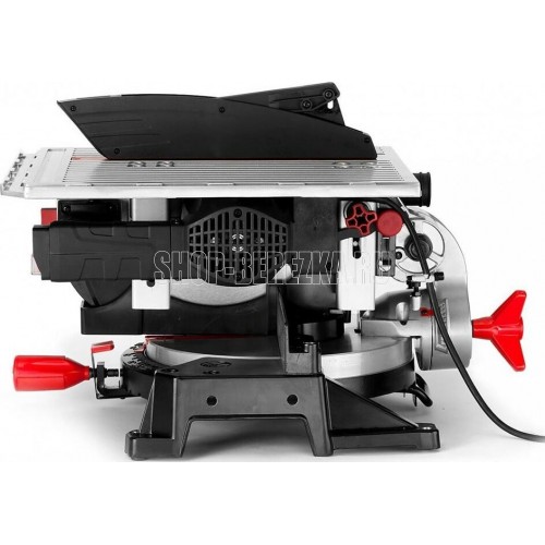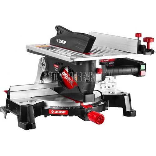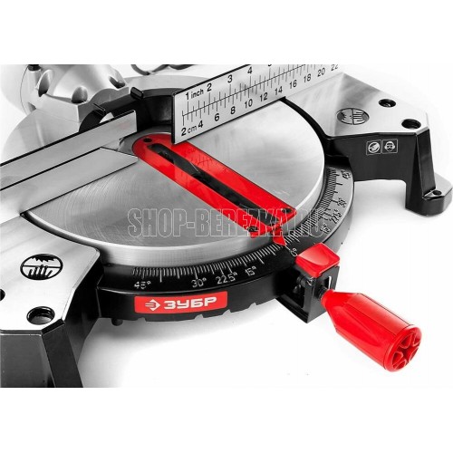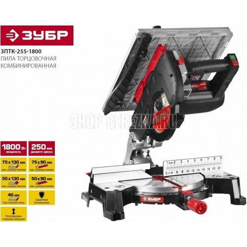 Торцовочная пила Зубр МАСТЕР ЗПТ-255-1800 ПЛ применяется для прямого, косого и комбинированного пиления, а также пиления под наклоном. Подходит для резки таких материалов, как древесина, пластик, тонкостенный алюминий. Лазерная подсветка линии реза позволяет увеличить точность пропила. Благодаря сдвижной голове и диску большого диаметра достигается увеличенная ширина реза. Фиксирующийся в любом положении поворотный стол и удобная регулировка наклона облегчают установку угла пиления. Наличие лазера. Габариты, мм 790x480x400. Длина кабеля, м 2. Мощность, Вт 1800 .Вес, кг 13 Max ширина пропила под углом 90°, мм 130. Max ширина пропила под углом 45°, мм 210. Max глубина пропила под углом 90°, мм .90 Max глубина пропила под углом 45°, мм 55. Диаметр диска, мм 255 .Посадочный диаметр диска, мм 30. Тип двигателя щеточный .Горизонтальное перемещение.