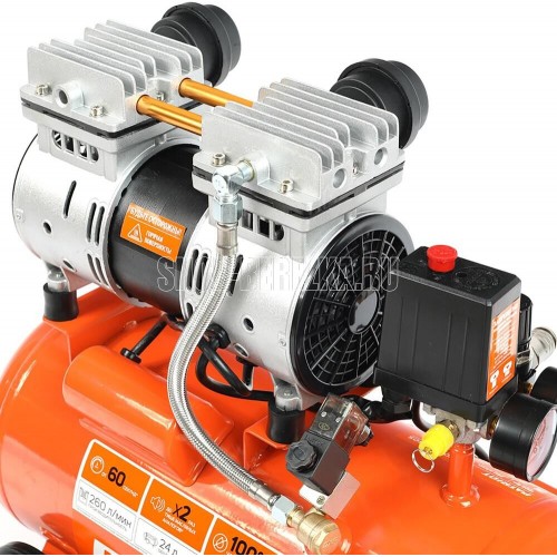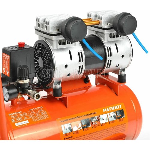 Макс. производительность, л/мин 260. Частота вращения, об/мин 2850. Регулировка давления . Макс. рабочее давление, бар 8. Транспортировочные колеса . Тип смазки безмасляный. Макс. мощность, кВт 1.5. Тип привода прямой. Количество цилиндров/ступеней, шт 2/1. Объем ресивера, л 24. Тип штуцера быстросъемный.