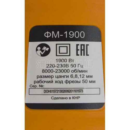 Напряжение сети, В 220 - 230. Частота, Гц 50. Ход фрезы, мм 50. Страна производства Китай. Частота вращения, об/мин 8000-23000. Размер цанги, мм 6, 8, 12. Вес брутто, кг 5.7. Мощность, Вт 1900.