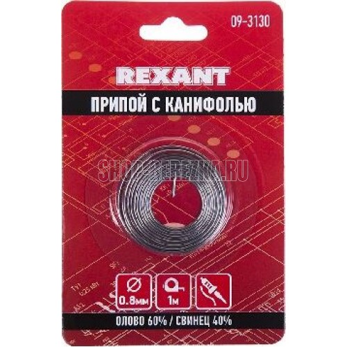REXANT (09-3130) ПРИПОЙ С КАНИФОЛЬЮ , 1 М, 0.8 ММ, (ОЛОВО 60%, СВИНЕЦ 40%), СПИРАЛЬ, БЛИСТЕР