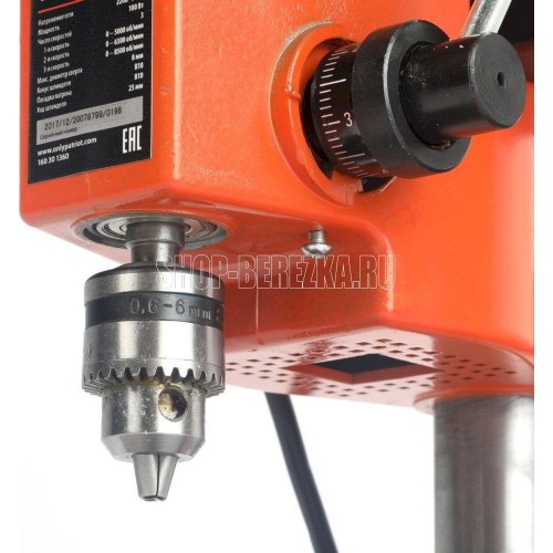 Станок сверлильный. Частота вращения, об/мин 0-8500. Количество скоростей 3. Скорость 1, 2, 3, 4 ,5 об/мин 5000, 6500, 8500, -, -. Размер рабочего стола, мм 170х170. Ход шпинделя, мм 25. Макс. диаметр сверла, мм 8. Расстояние шпиндель-основание, мм 140. Общая высота, мм 305. Размер тисков, мм 60х60. Конус шпинделя/посадка патрона B10/B10. Мощность, Вт 100.