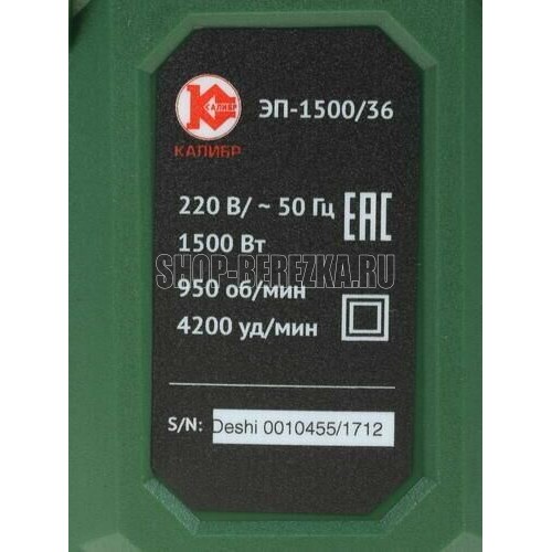 Потребляемая мощность 1500 Вт. Частота ударов 4200 уд/мин. Максимальный диаметр сверления: бетон х металл х дерево 36 х 13 х 42 мм. Энергия единичного удара 5,5 Дж. Число оборотов на холостом ходу 950 об/мин. Система зажима SDS-plus. Ключевой патрон 1/2-20UNF, диаметр сверла 1,5-13 мм. Максимальный уровень вибрации (по бетону в режиме долбления) 13,2 м/с2. Уровень звукового давления 92 дБ(А). Класс безопасности (ГОСТ Р МЭК 60745-1-2011) II. Электродвигатель Однофазный коллекторный. Номинальное напряжение/Частота 230 В/50 Гц. Габариты в упаковке (ДхШхВ) 370х115х330 мм