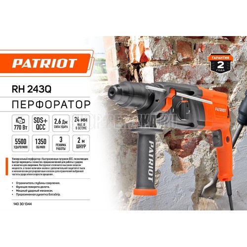 Макс. энергия удара, Дж 2,6 Тип патрона SDS-plus, быстросменный QCC Мощность, Вт 770 Макс. количество ударов, уд/мин 5500 Макс. число оборотов, об/мин 1350 Тип двигателя щеточный Защита от пыли есть Макс. диаметр сверления в бетоне, мм 26 Макс. диаметр бурения бетона коронкой, мм 68 Макс. диаметр сверления по кирпичу, мм 24 Макс. диаметр сверления по дереву, мм 30 Макс. диаметр сверления по металлу, мм 13 Морозоустойчивый кабель есть Напряжение сети, В 220-230 Длина сетевого кабеля, м 2,1 Быстросменный патрон есть Быстрая замена щеток есть Дополнительная рукоятка есть Металлический корпус редуктора да Ограничитель глубины сверления есть Предохранительная муфта есть Сверлильный патрон в комплекте есть Прорезиненная рукоятка да Кейс в комплекте есть